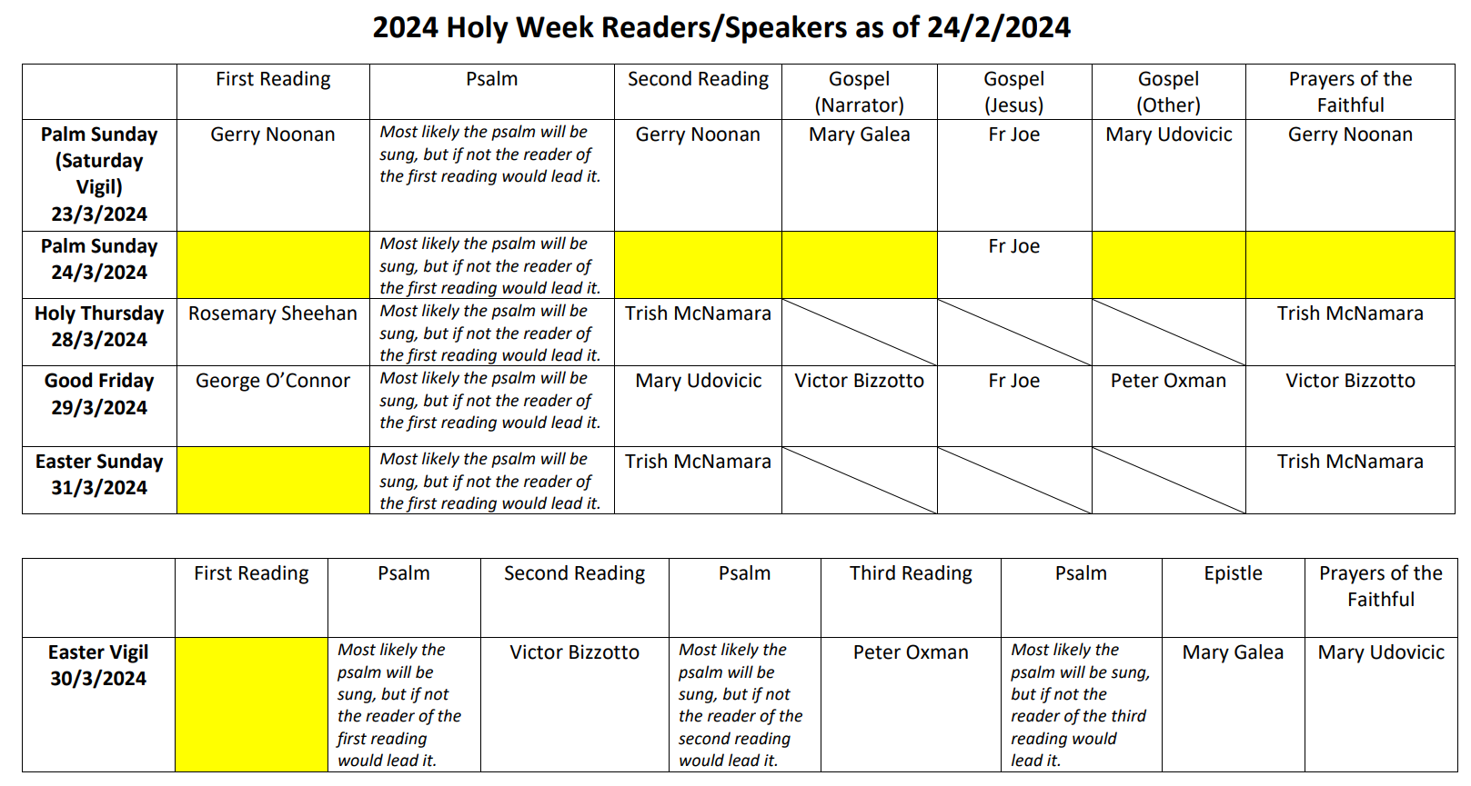 Easter reader roster